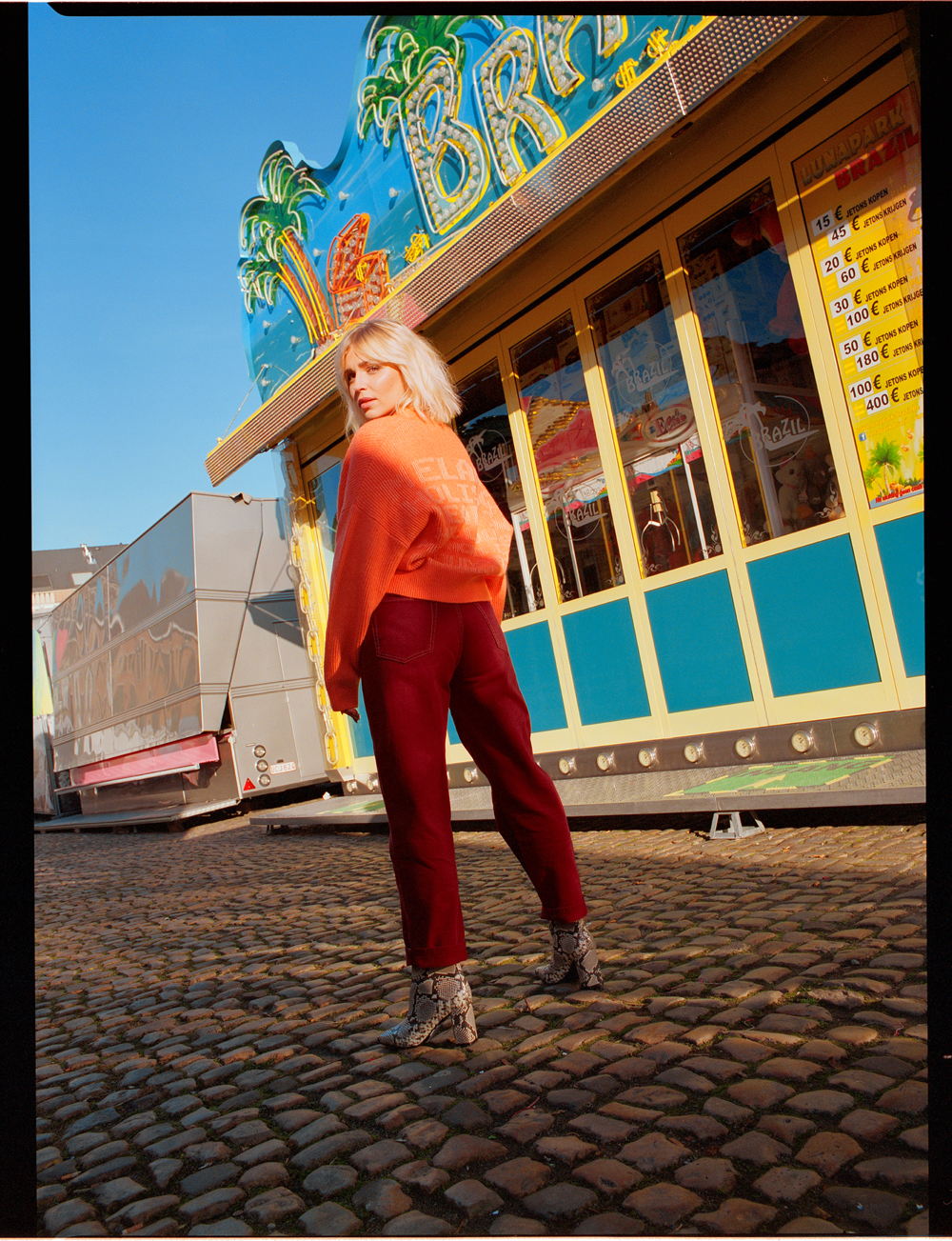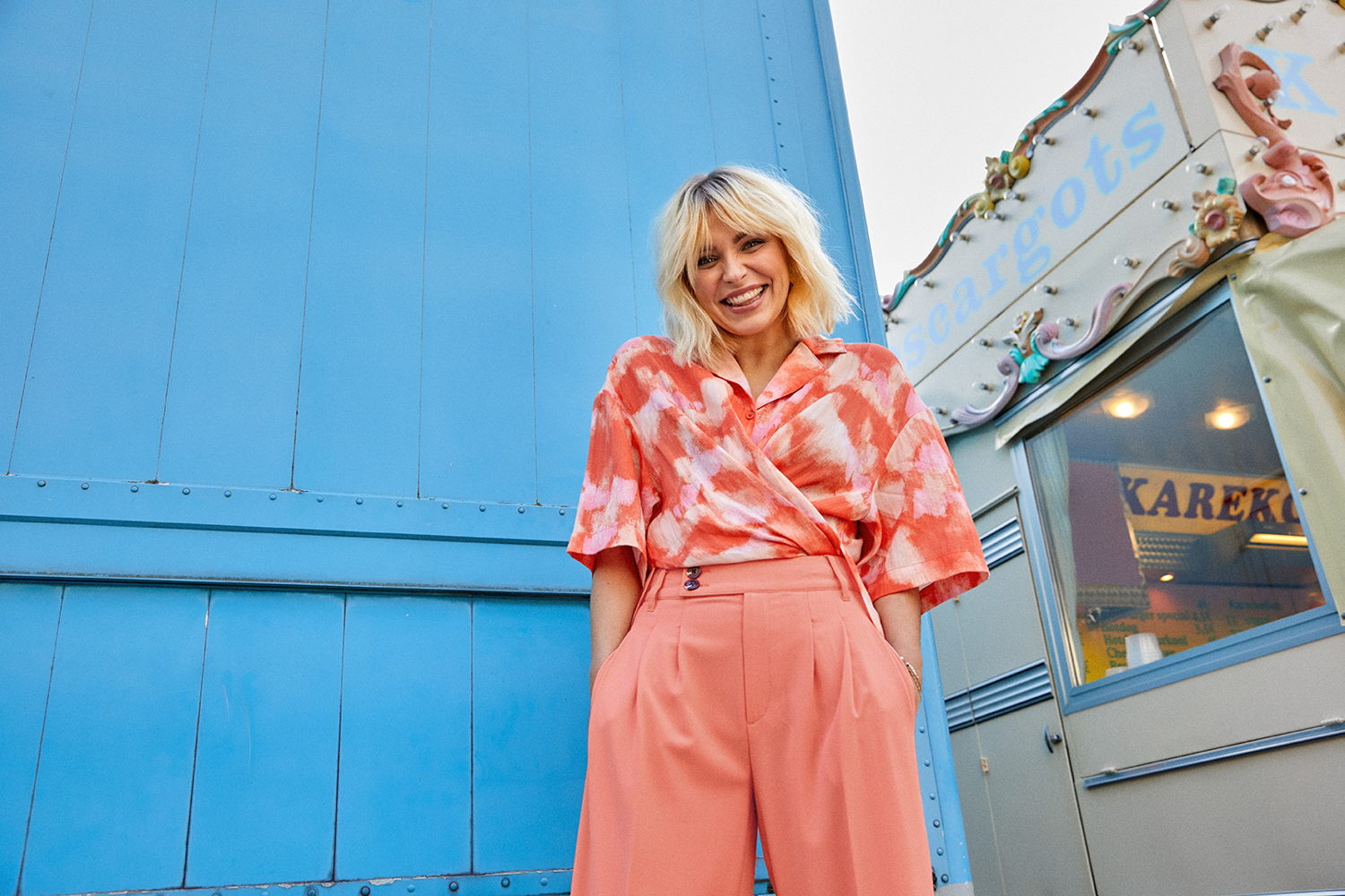 “Als ik in een slechte bui ben, grijp ik bewust naar de fleurigste stukken in mijn kleerkast. Kleren verklappen veel over je persoonlijkheid, en maken de vrouw én man,” vertelt Julie. Dat zo’n stralende verschijning een vrolijke collectie ontwierp, verbaast niet. Als grote fan van Isabel Marant creëerde ze trendy maar tijdloze stukken waar zowel vrouwen als mannen zich goed in voelen. “Een paar van mijn mannelijke vrienden hebben mij al verteld dat ze de roze blazer op de launch party zullen dragen,” gaat Julie verder. “Geweldig, toch?”